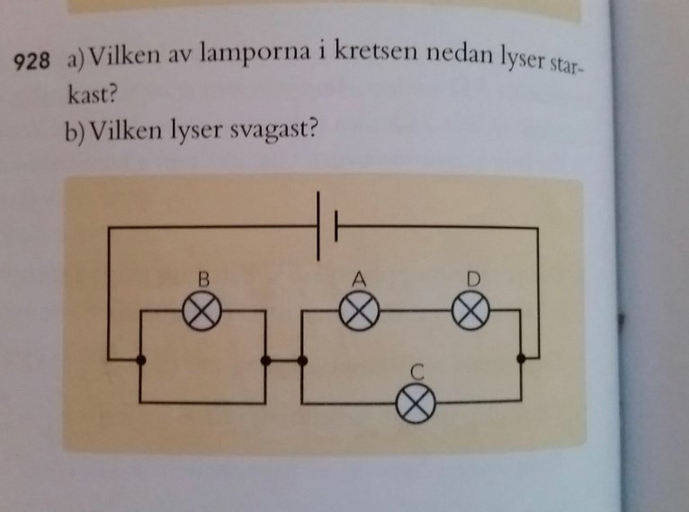 Katarina149 skrev:Hur kommer det sig att lampa B lyser svagast?