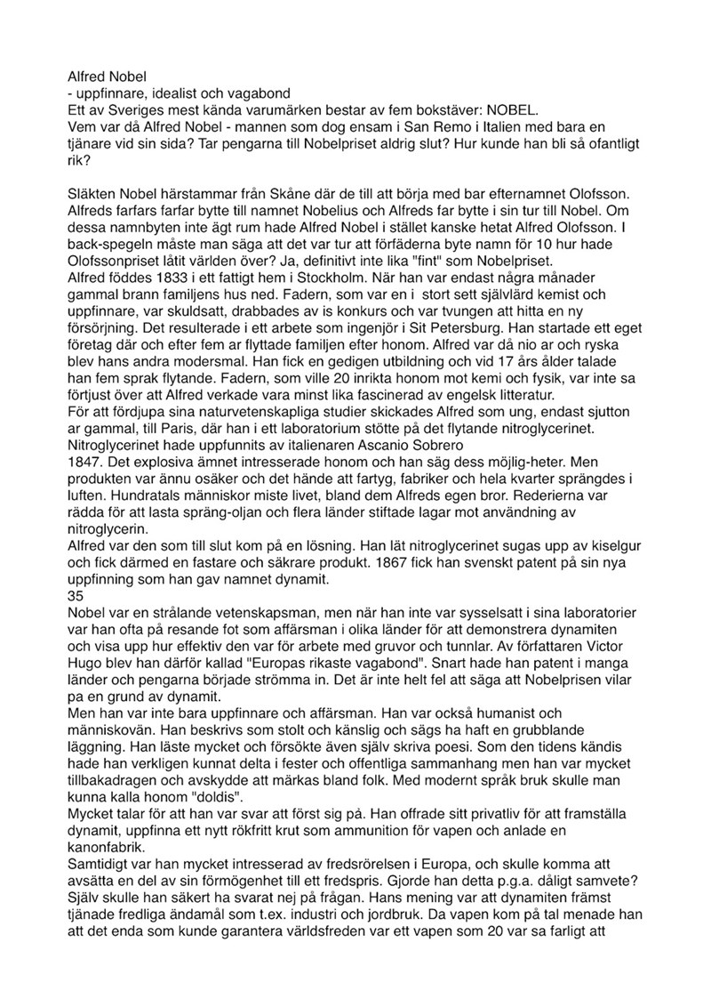 alternativa rubriken som passar till min argumentation text. Jag har valt en rubrik: "Alfred Nobel: Mannen Bakom Fredspriset".