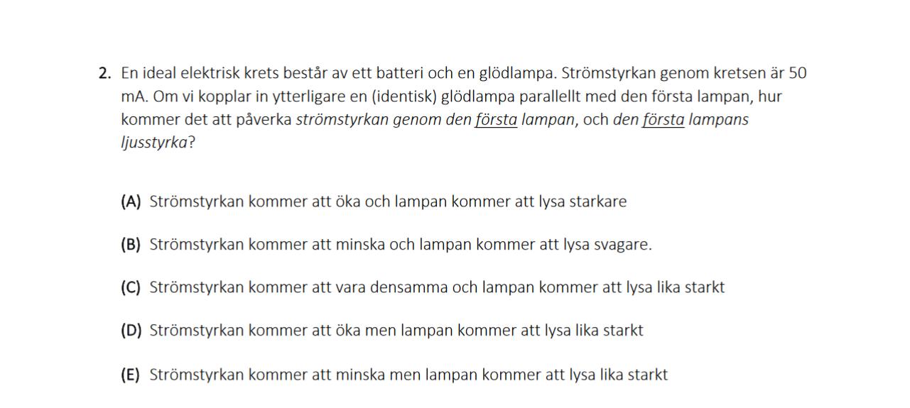 Jag vet inte riktigt varför jag tänker fel här. Jag trodde att rätt var B men detta stämmer inte. Här kommer mitt resonemang.