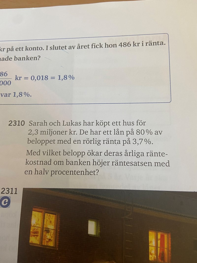 Har endast kommit ända hit steg för steg: Lån 80% alltså 0,8•2300000=1840000