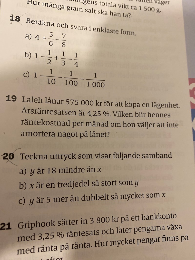 Hej, kan jag få hjälp med fråga 19 snälla?