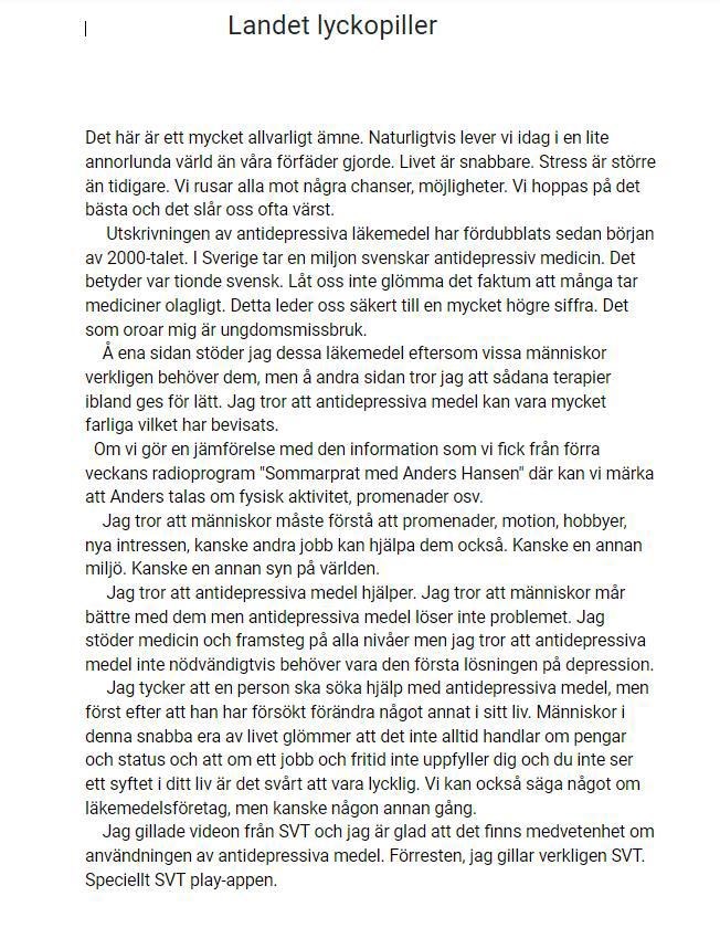 Hur tycker du om det jag skrev? Kan jag ge det till läraren? Tack