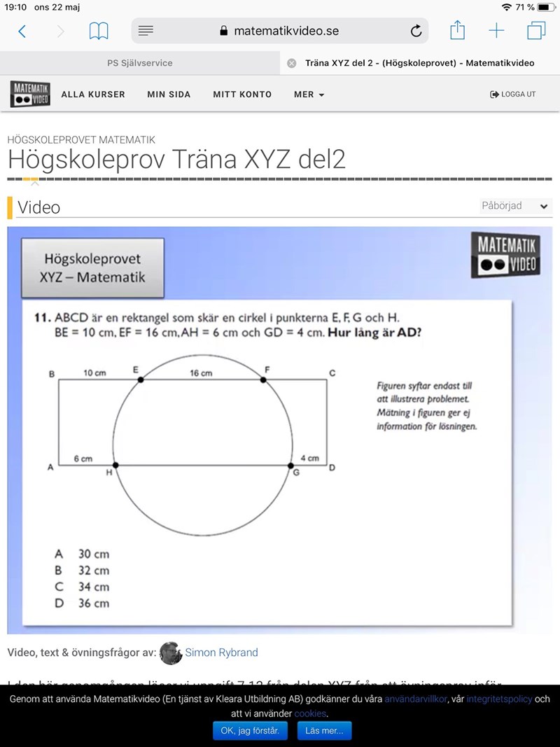 34 är rätt, men du fick med en fyra för mycket i uträkningen.