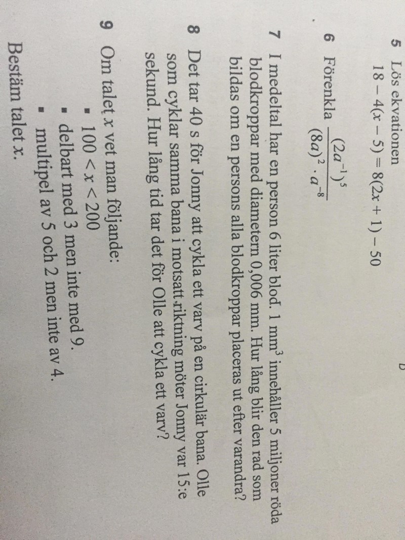 För att sedan räkna ut längden tar jag och multiplicerar antalet med längden för en blodkropp. Då får jag 1,8x10^5 km. Men facit säger 1,8x10^8 km. Vad gör jag för fel?