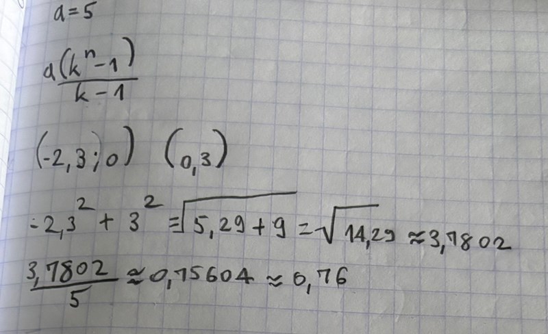 Jag beräknade med pythagoras sats att c=5 eftersom jag tänkte på att det är en rätvinklig triangel. Stämmer det att det första talet i det geometriska summan blir också 5?