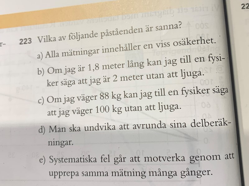 Påstående b är sann Stod det i facit, men varför är den sann då? Och om påstående b är sann varför är inte påstående c sann?