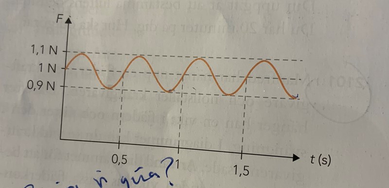 En pendelkula som väger 100 gram hänger i en lätt tråd. I grafen nedan visas hur belastningen på tråden varierar med tiden.