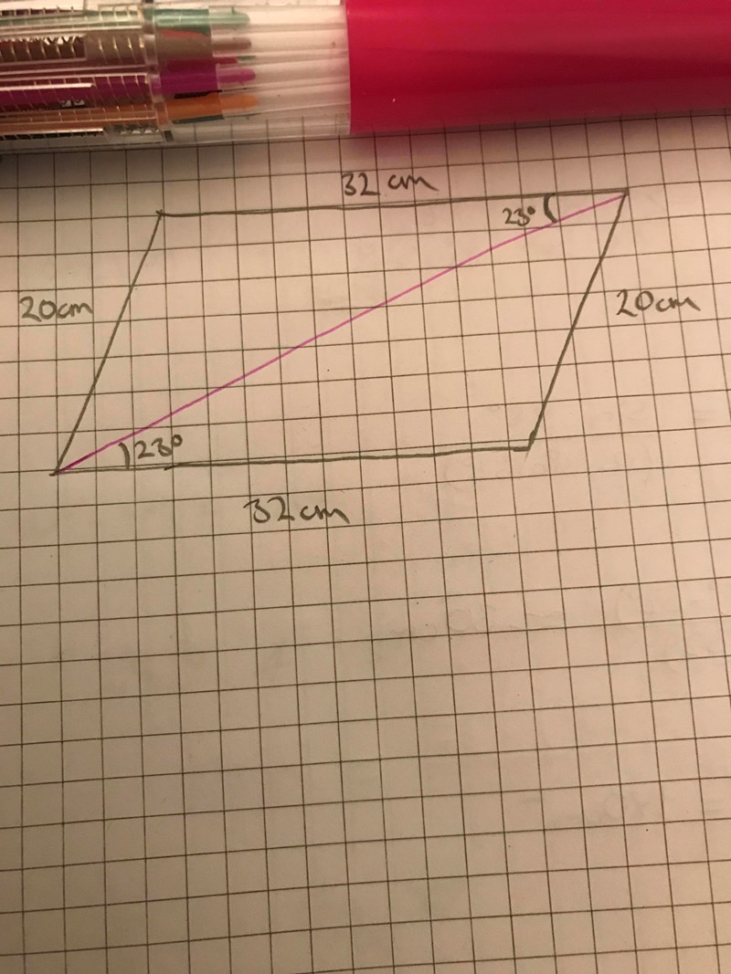 kan någon hjälpa mig? de vill att man ska beräkna längden av diagonalen i parallelltrapetsen