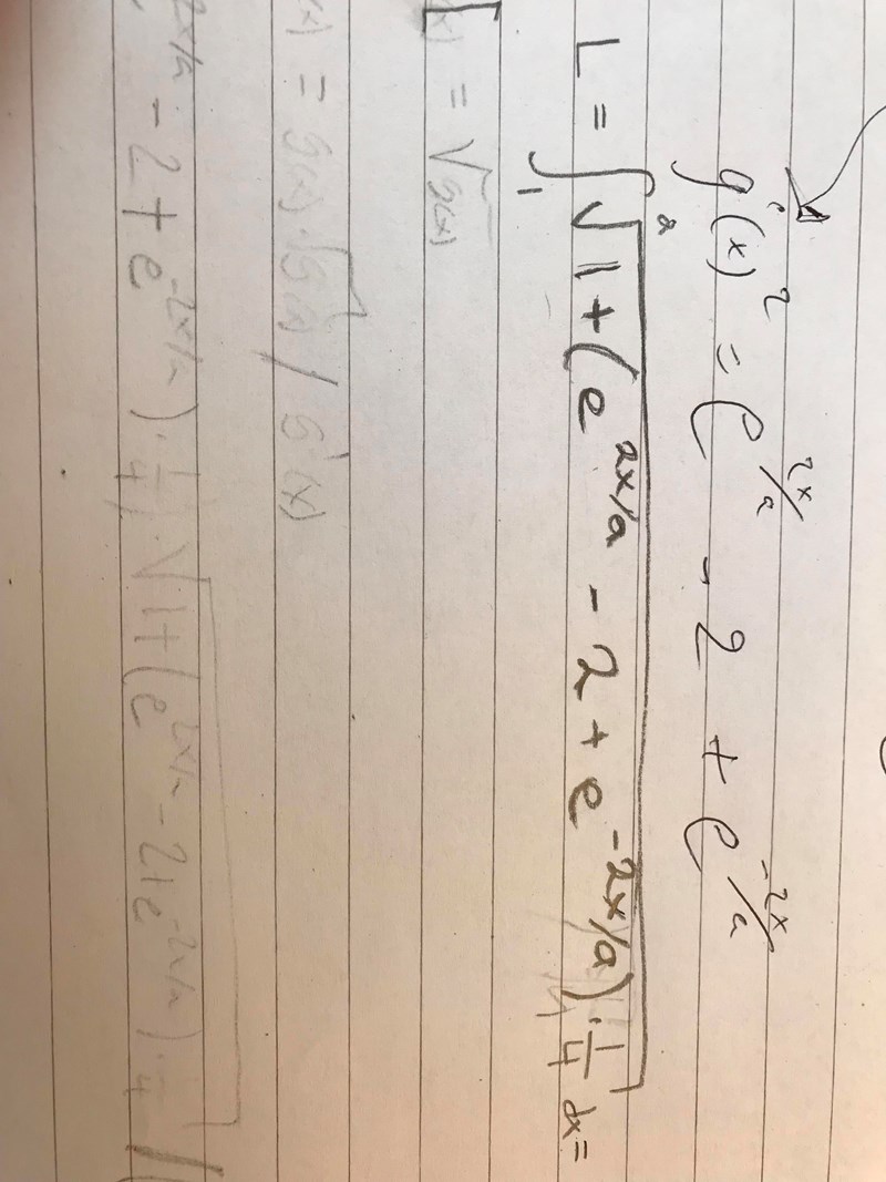 Jag ska räkna ut längden av kurvan y=(e^x + e^-x )/2 mellan x=1 och x=2