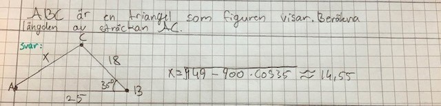 Men du har inte visat hur du kom fram till det. Varifrån kom 949? 900? Vilken trigonometris sats har du använt?