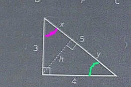 Du har tre rätvinkliga trianglar som alla är likformiga med varandra.