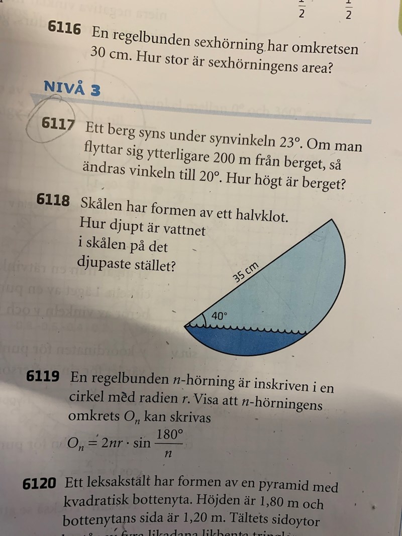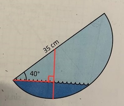 Det kan jag förstå, uppgiften förvirrar mig också. Vad händer om man drar en linje från halvcirkelns mittpunkt till högra sidan av vattenytan? Ger det något?