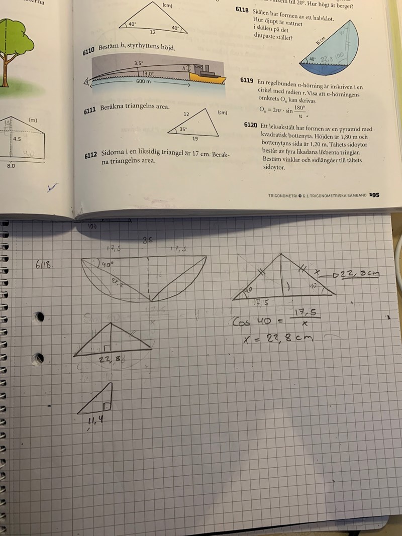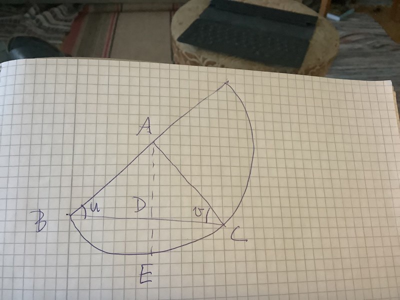 Elizabeth, jag tror din figur är fel. Den triangeln är inte likbent. Om jag fattar rätt