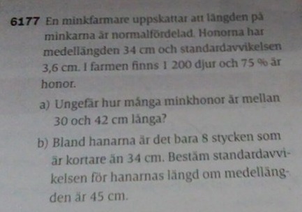 alltså att 45 minus 1.94 standardavvikelser kommer bli likmed 34cm.. Då får jag att x, dvs standardavvikelsen är ca 5.7cm, vilket är rätt.