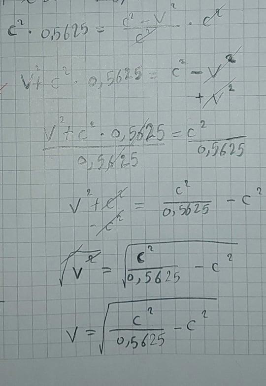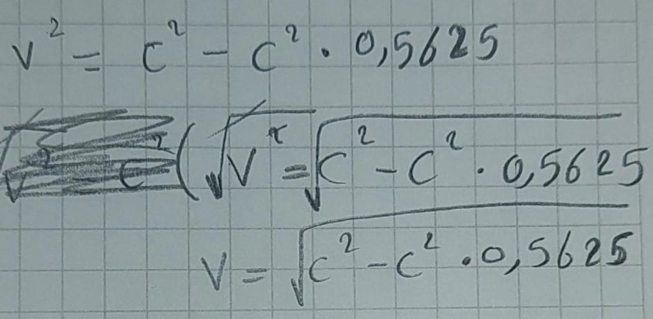 Nej, du gör fel på tredje raden. Börja om från andra raden, subtrahera 0,5625c2 på båda sidor. Kommer du vidare?
