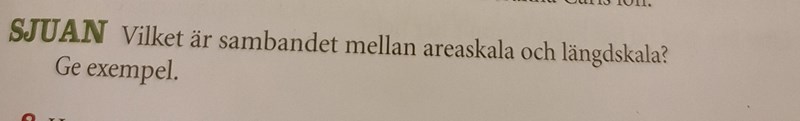 Om du tänker dig att du har en figur, t x en kvadrat, som är ritad i skala 1:100. Om kvadraten i verkligheten har sidlängden 1m hur lång är då den ritade figurens sida? Hur stor är ytan i verkligheten? Hur stor är ytan på papperet? Vad blir förhållandet mellan den verkliga ytan och den ritade ytan?