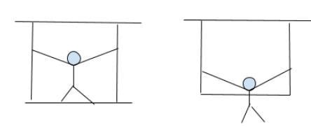 Var är personens tyngdpunkt i förhållande till gungans sits - över eller under?