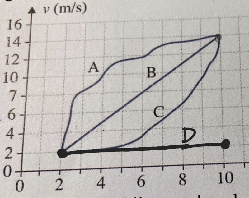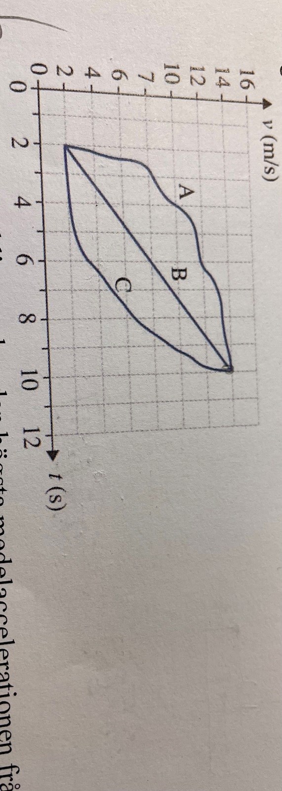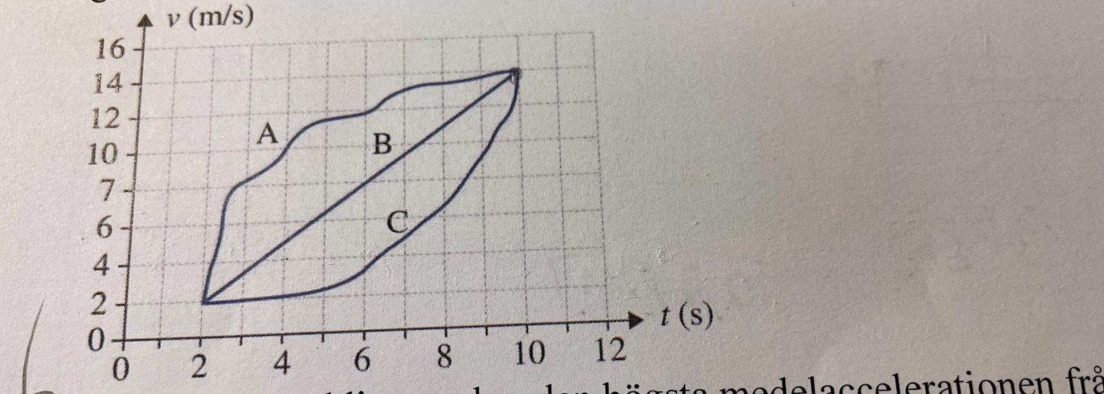 Men: Jag tänker att det är A - för att den har högst v under den givna tidsperioden 2 -> 8 s.