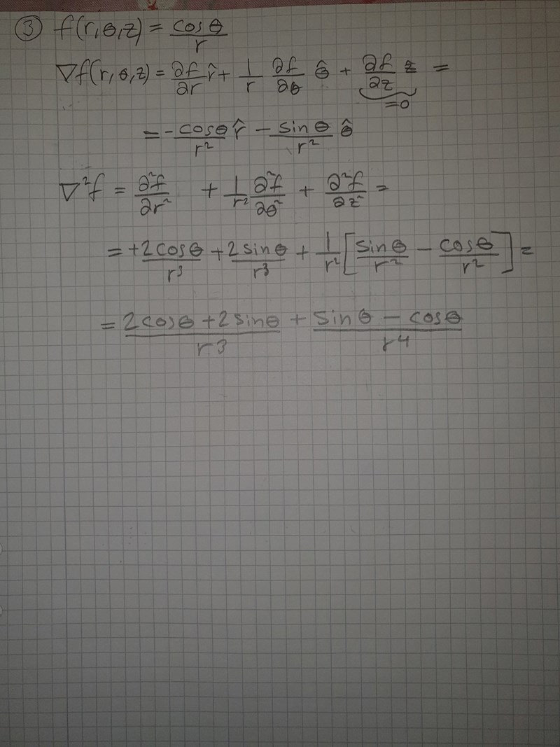 Hur ser formeln för divergens ut i cylinderkoordinater? Skriv upp formeln och tillämpa den sedan på den gradient som du räknat fram.