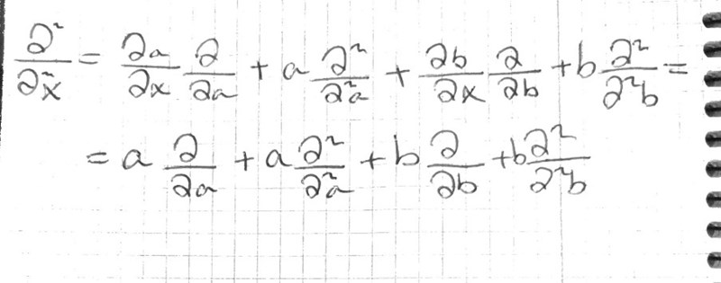 Du vill uttrycka Laplaceoperatorn i termer av de ny variablerna a och b. Dvs med utnyttjande av operatorerna och .