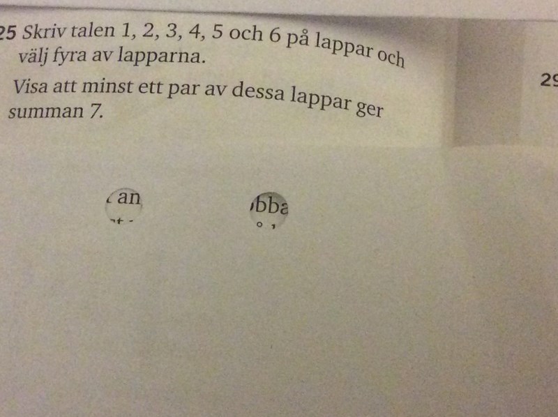 Alltså går det alltid att bilda minst ett par med summan 7 om du har 4 lappar.