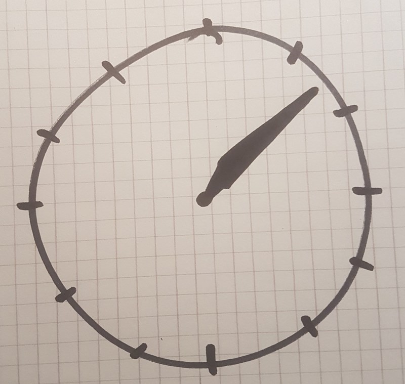 Nej du ska rita in minutvisare som går från urtavlans mittpunkt till urtavlans rand. som jag visade t.ex. i det här svaret.