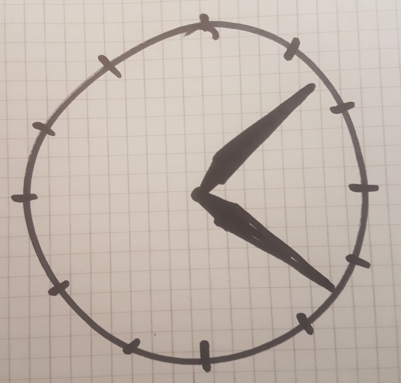 Titta på den här bilden. Förstår du kopplingen mellan minutvisare och vinklar?