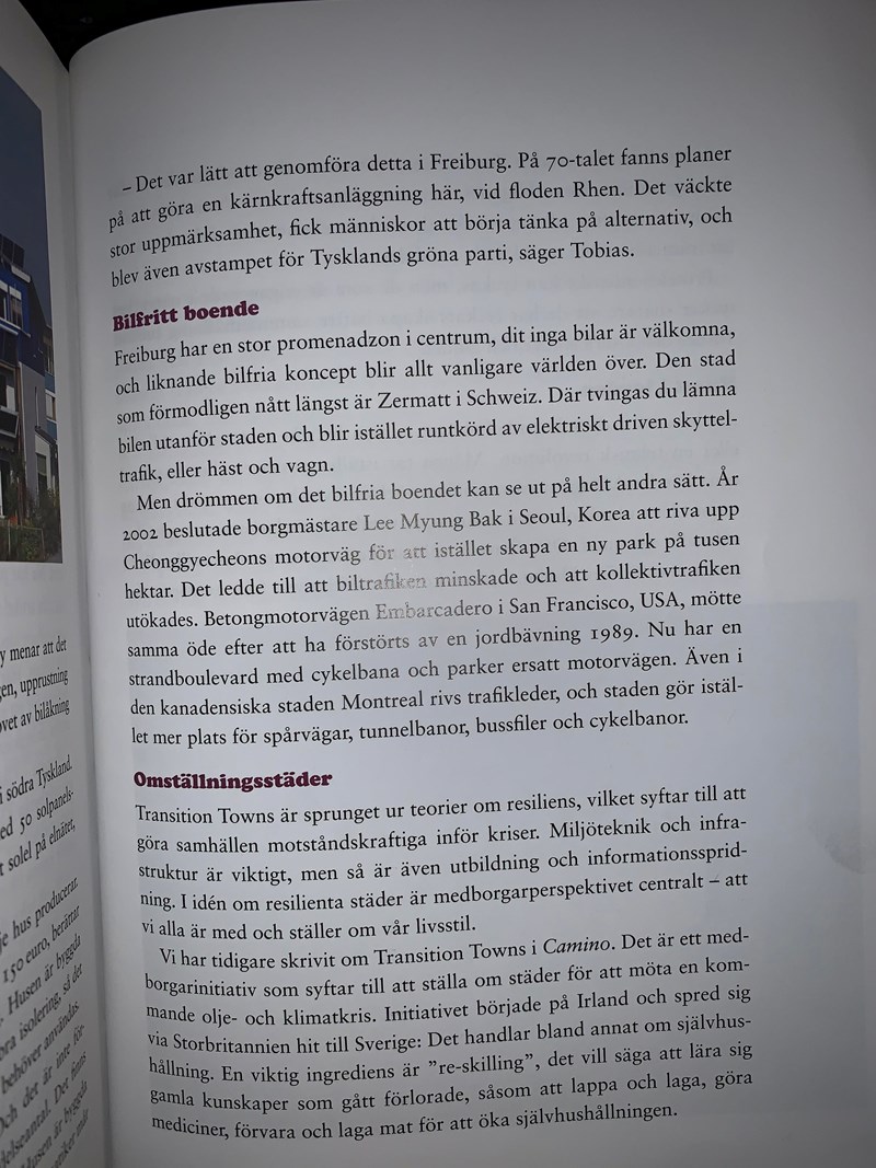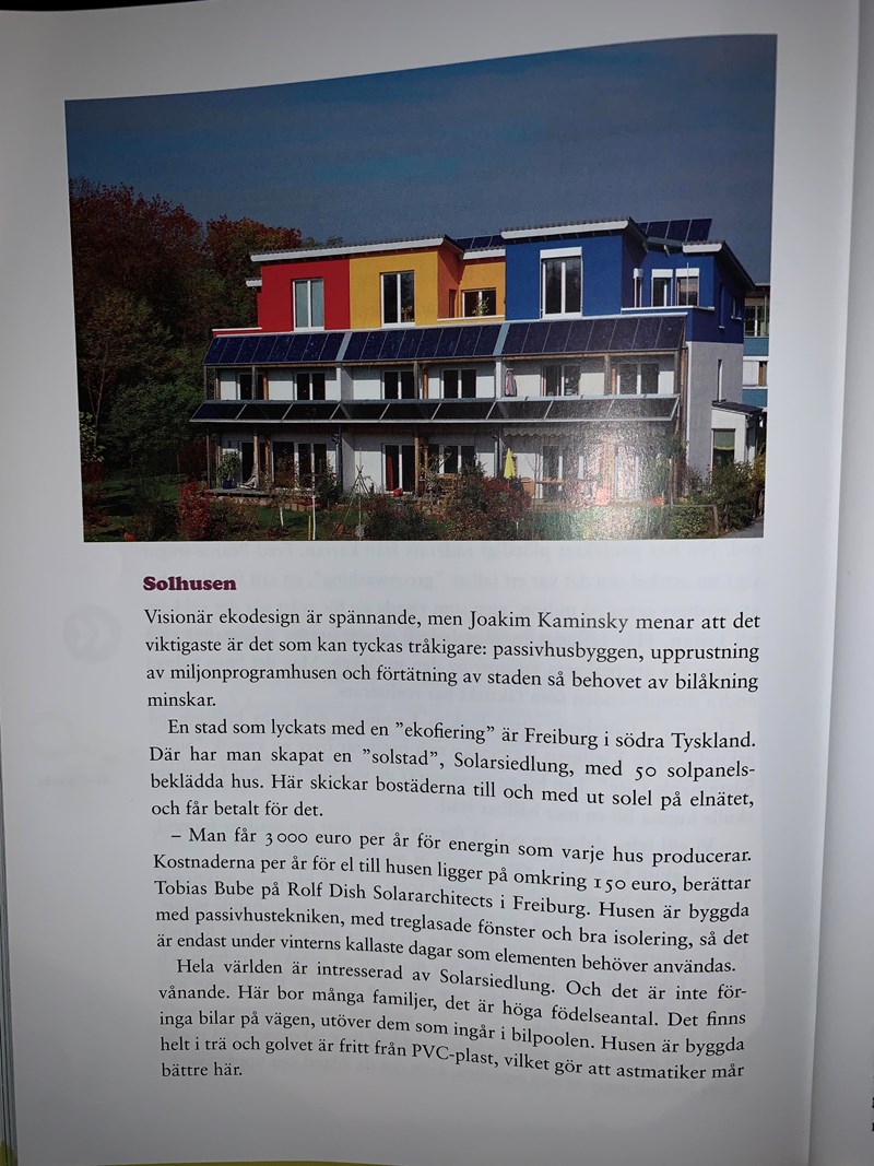 Freiburg är inte bilfritt, bara delar av centrum. Jag försöker fråga igen, läs i texten. Vad är det för något som de skapat i Freburg som världen är intresserade av? Det nämns till och med i en rubrik.
