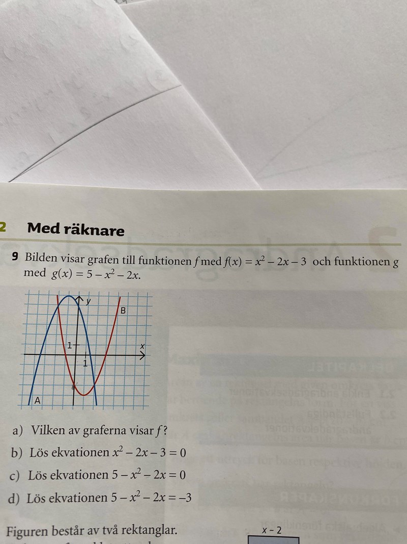 Jag vet att B är f(x) eftersom den är negativ men jag förstår inte var 5 och -2x är ?