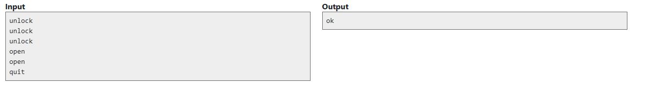 När vi kör unlock för första gången så sätter vi n=1n=1, nu kör vi unlock igen, men eftersom n=1n=1 så körs else blocket. Även om vi nu kör en valid sekvens, så har vi redan triggat flaggan.
