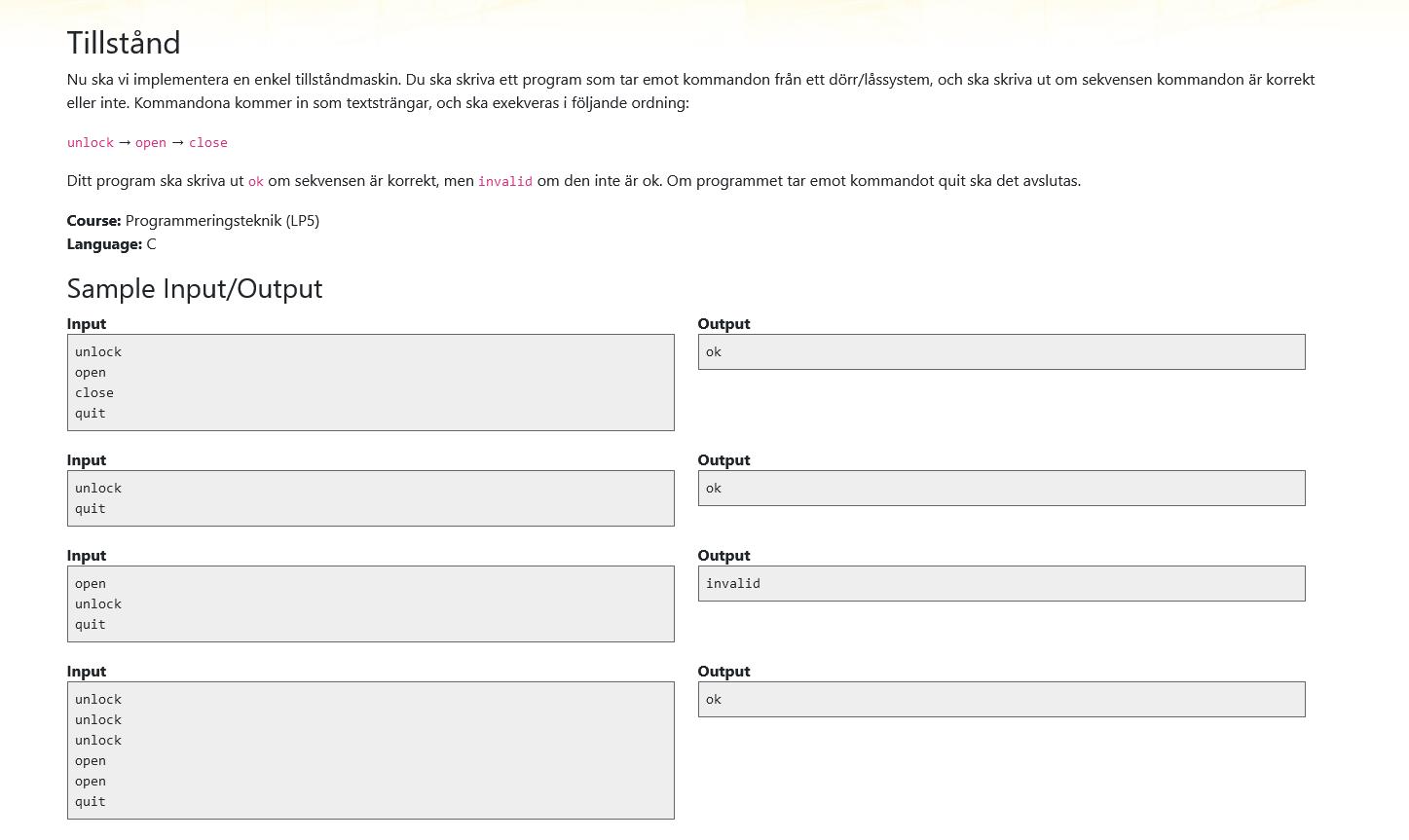 Okej, men nu när jag testar de olika imput/output så fungerar alla förutom denna som blir invalid när jag kör programmet: