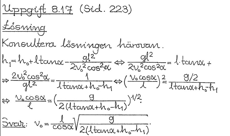 Så denna lösning började med en formel (kastparabelns ekvation) som man förmodligen skulle slå upp.