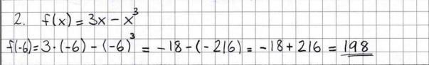 Låt f(x) = 3x - x^3 , beräkna f(-6)