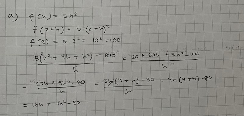 Trodde du syftade på att jag hade skrivit att 5*22 i parantesen blev 100, för då skrev jag att det blev 20! Men det stämmer det du säger att jag råkat skriva att f(2) även blir 100, missförstod lite vad du menade (: