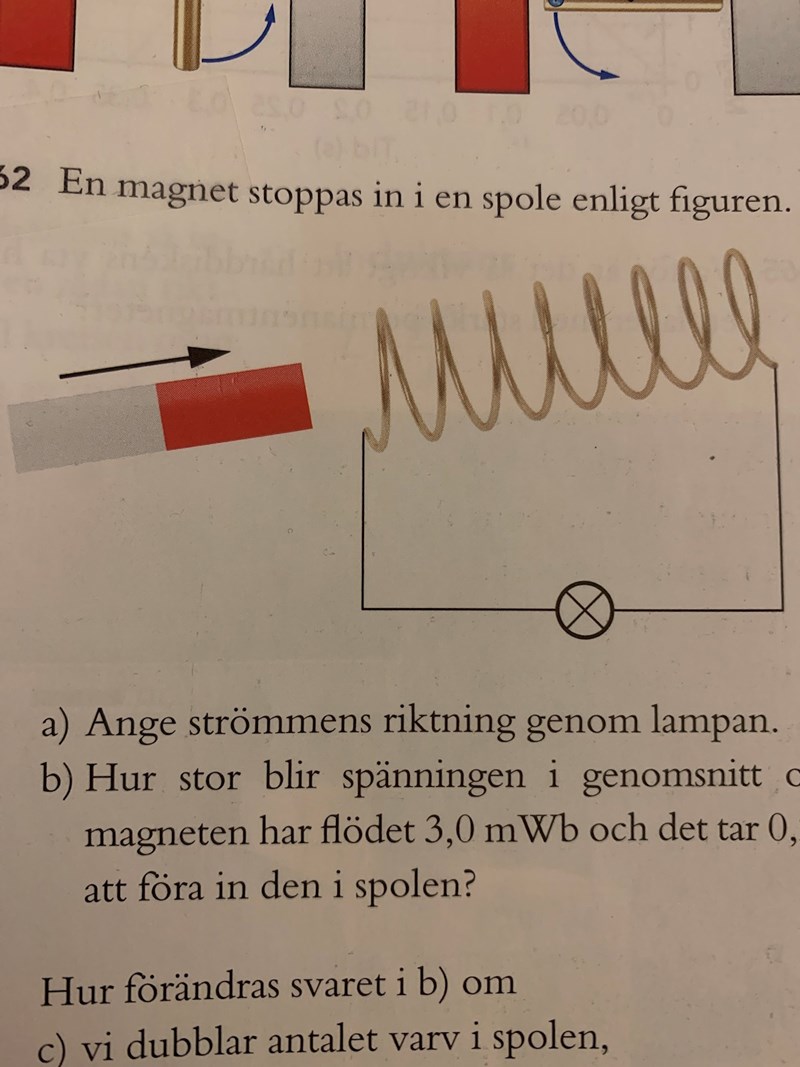 Jag tänkte att när magneten förs in i spolen kommer ett magnetfält som motverkar det uppstå (kommer riktas tvärtom) och utifrån det använde jag högerhandsregeln och bestämde strömmens riktning. Men har tänkt fel och det blir inte rätt enligt facit.