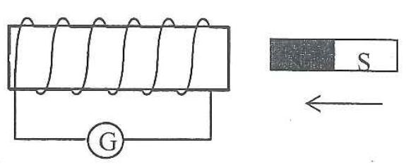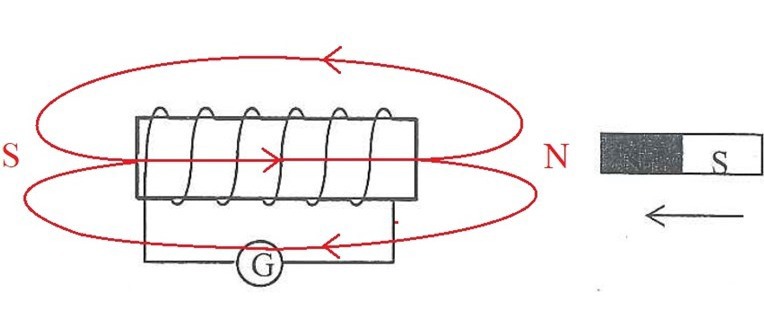 Åt vilket håll går strömmen när magneten rör sig i pilens riktning?