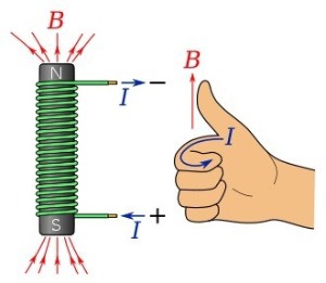 Alternativt använder du den variant på högerhandsregeln som ebola är inne på. I detta fall, greppa runt spolen med tummen riktad åt norr. Strömmen genom spolen kommer att gå som dina fingrar.