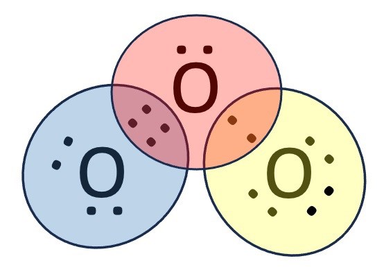 Men bägge elektronerna i enkelbindningen delas av båda syreatomerna, så båda syreatomerna får "två elektroner" genom att dela denna bindning. Och de resterande tre fria elektronparen, ger tillsammans med bindningselektronerna åtta - precis som enligt oktettregeln.