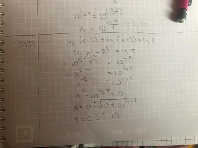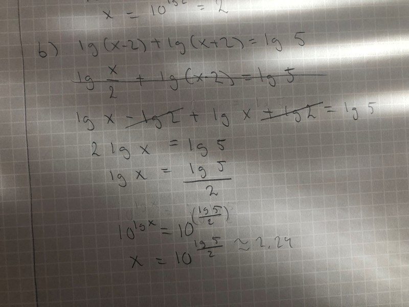 lg (x-2)+lg (x+2)=lg 5 uppgift 3433 b) liber ma2c