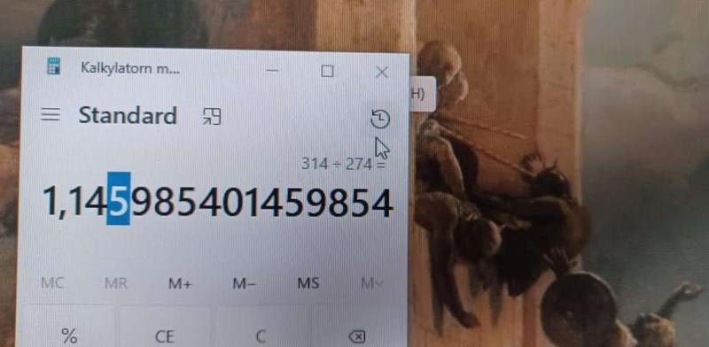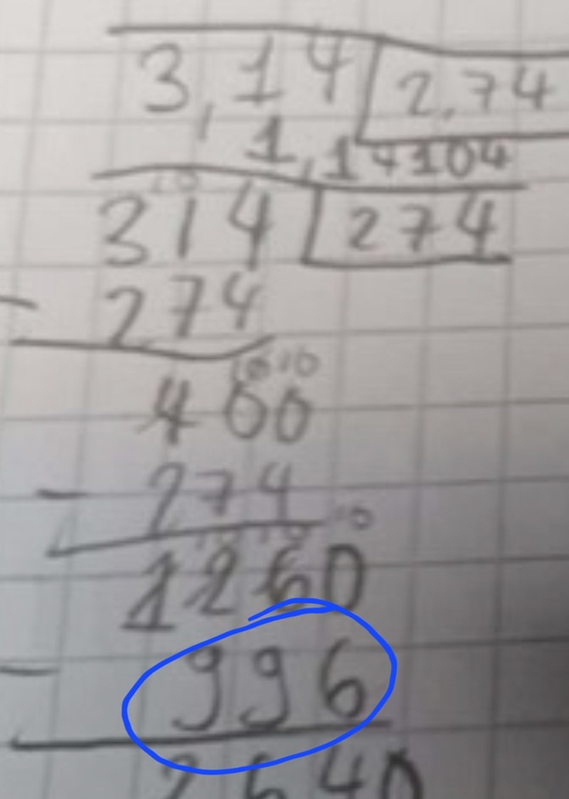 Hej, Jag försökte dela 3,14 med 2,74 med liggande stolen och det blev fel.