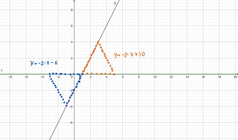 Om det är rätt så skulle ekvation för den ska vara y=-2x+10