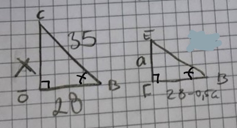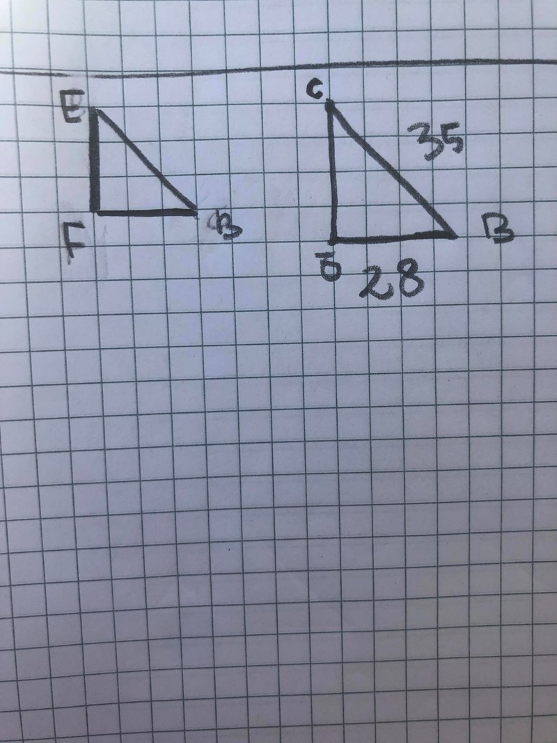 Du vet att sidan BC har längden 35. Om sidan EB är x så är sidan EC...