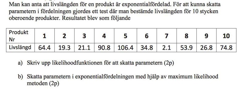 Här behöver du inte använda något (skattat) sigma, utan bara definitionen av likelihoodfunktionen. Likelihoodfunktionen definieras som där f är sannolikhetstäthetsfunktionen och är parametern som ska skattas.
