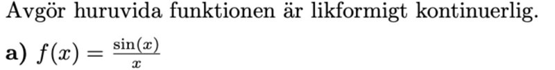 I facit är funktionen likformigt kontinuerlig, men hur kan den vara det? När x går mot 0, borde ju f(x) gå mot oändligheten?