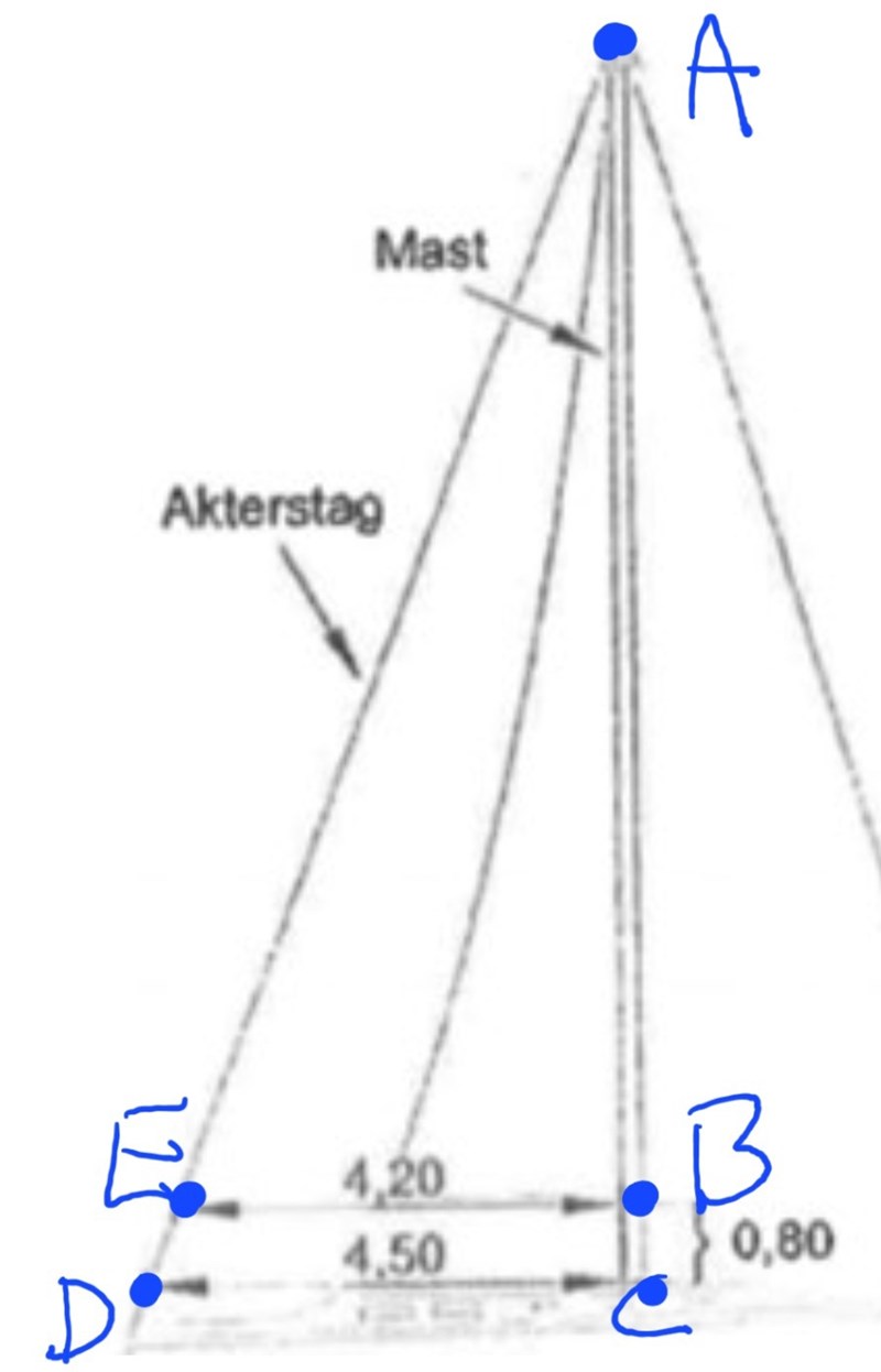 I fallet segelbåten så motsvarar sidan AB i den lilla triangeln sidan AC i den stora triangeln.