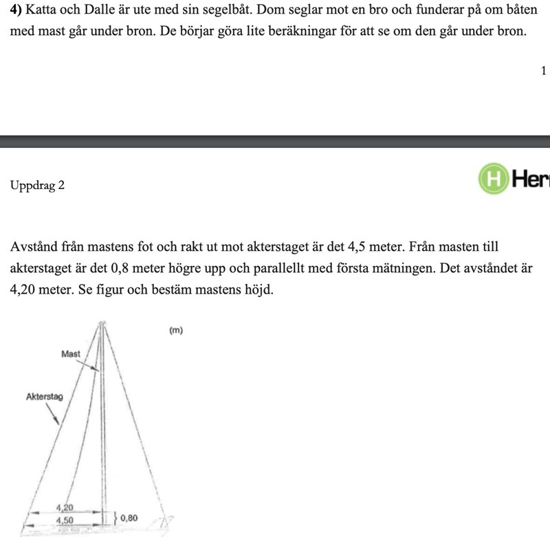 Jag är med på att det har med likformiga trianglar att göra, men alla uppgifter jag gjort tidigare har jag haft mer att gå på än detta, alltså fler mått på sidor. Så jag kommer ingenstans. Tips på var jag börjar?