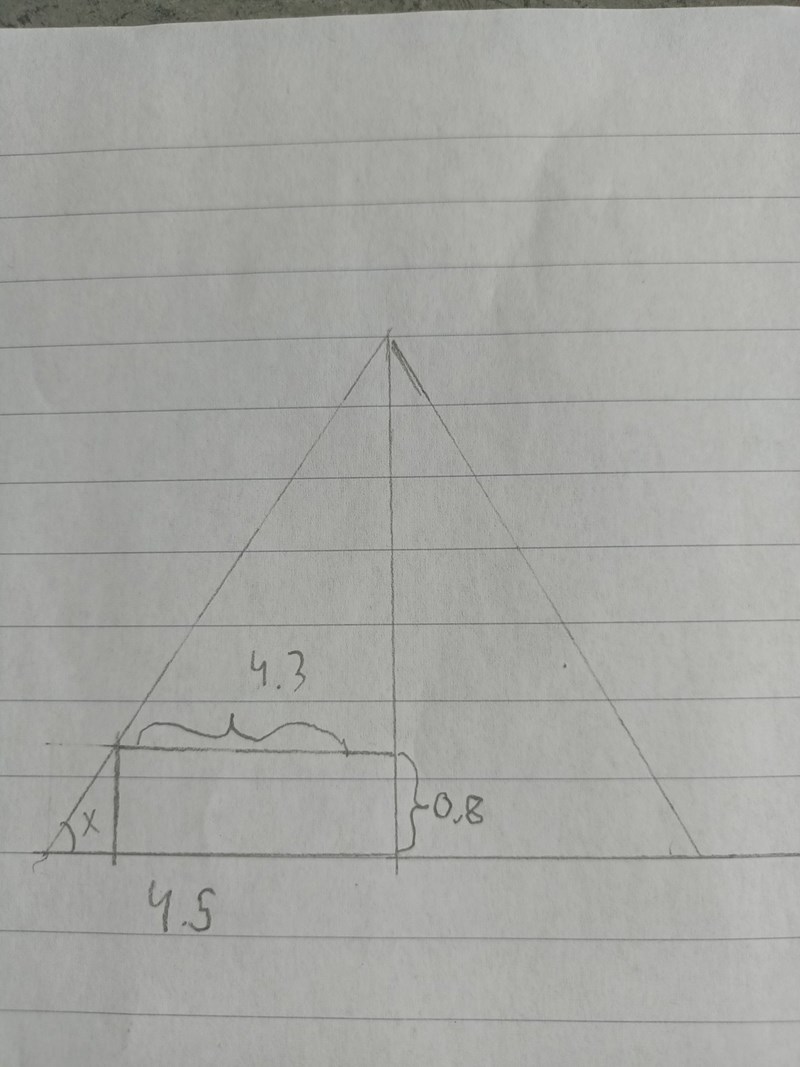 Jag tror du kan räkna ut det med trigonometry. Kan du räkna ut vinkelns värde längst ner åt vänster?