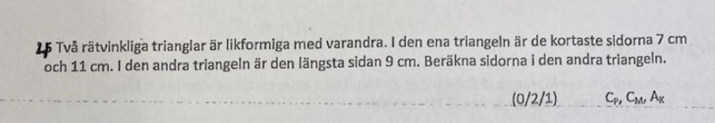 Den andra triangeln är likformig med den första. Är den större eller mindre? Hur mycket större eller mindre?