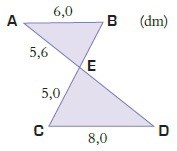 Vinkeln vid E i den nedre triangeln är lika stor som ...