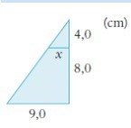 Topptriangeln är likformig med hela triangeln. Beräkna sträckan x